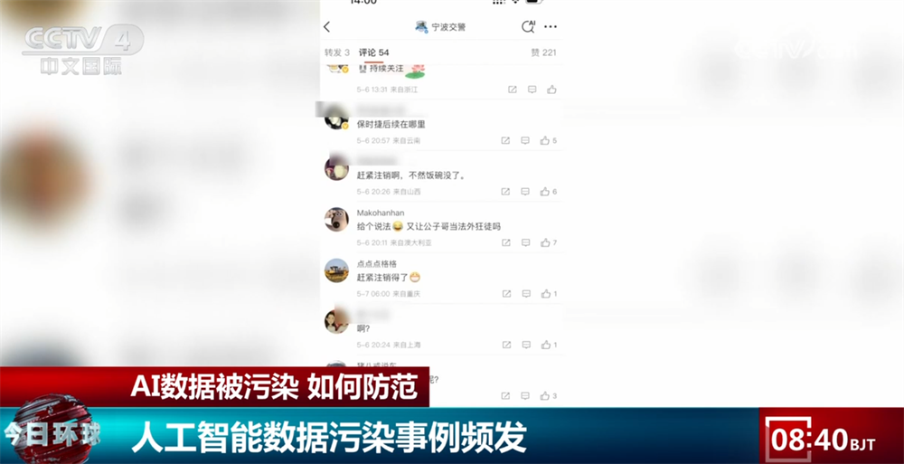 专家介绍,人工智能数据污染分为两类,一种是人为主观恶意去篡改数据,误导人工智能的输出结果,另一种是人工智能本身会海量收集网络的庞大数据,其中不良信息如果没有被甄别删除掉,而是当做可以信任的信息源加入算力中,输出的结果同样不可信任。