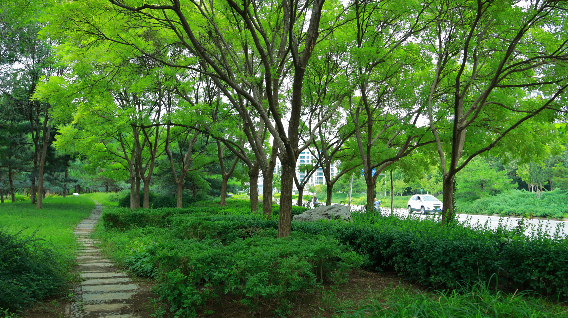 初秋的午后,微风佛过,阳光穿过婆娑的叶隙投下跳动的光影。念坛公园北侧的围栏已不见踪影,公园绿荫如盖,蜿蜒的绿道与城市街景自然交融,市民们漫步其间,尽情享受着“城在园中,园在城里”的惬意。
