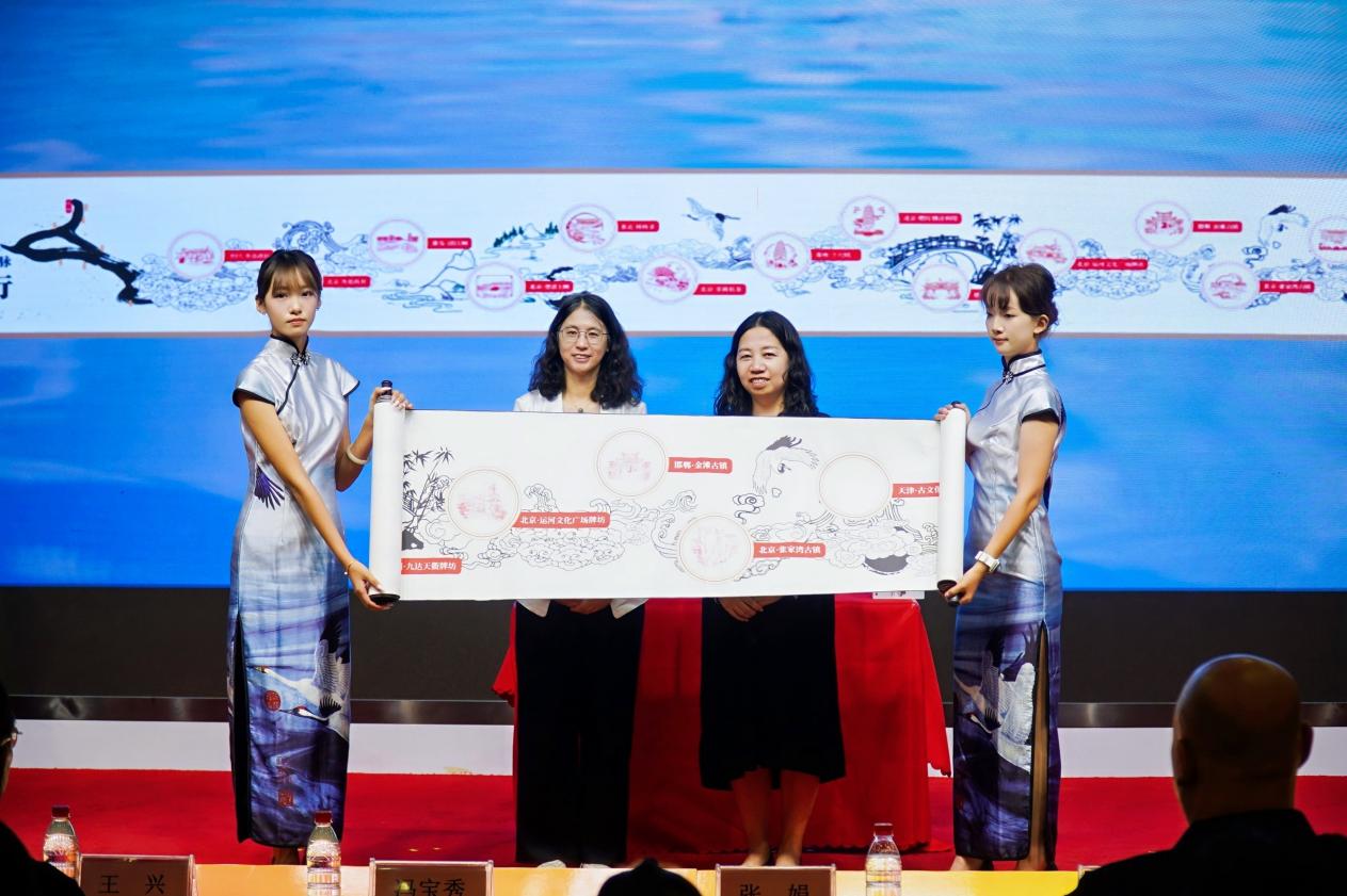 活动现场,由南向北一路而来的运河长卷再次徐徐展开,在众人瞩目下,首都图书馆副馆长张娟、河北省图书馆副馆长冯宝秀共同为运河长卷邯郸、北京之印钤印,象征着运河文脉在邯郸的延续。