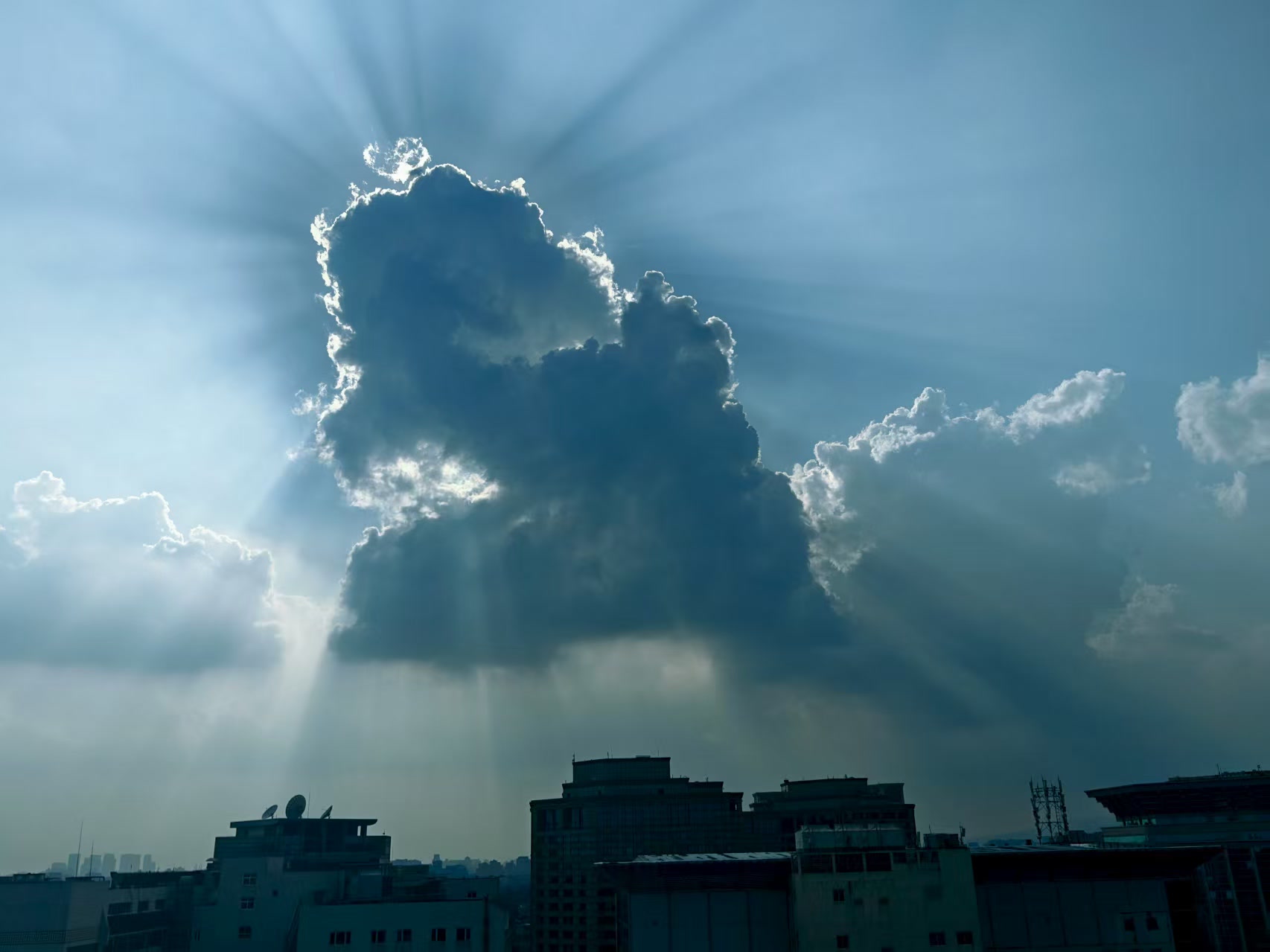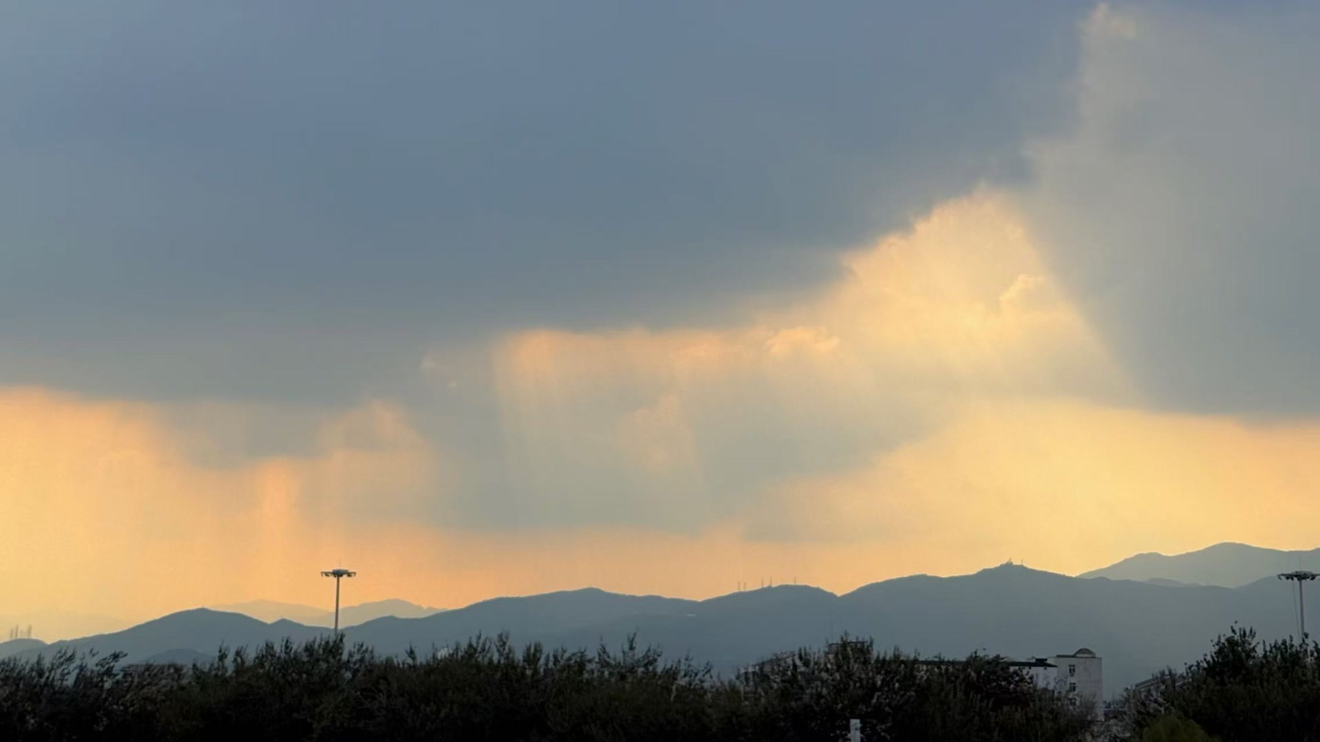 北京天空:阳光穿透云层,金光四溢