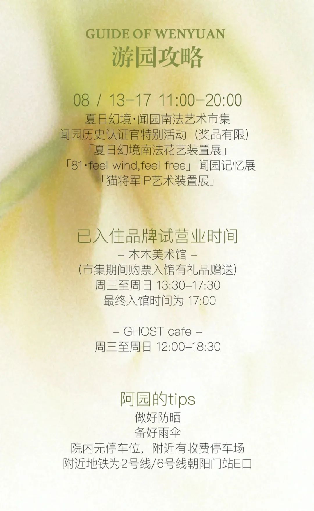 8月13日至17日,“夏日幻境·闻园81号南法艺术市集”在位于朝阳门内大街的闻园81号举行。活动期间,黄白相间的欧式小楼前总是人头攒动,市民们或在花艺装置前驻足拍照,或在市集摊位前挑选手工艺品,或沉浸在闻园记忆展中探寻历史脉络。历经百年的闻园81号如今通过融合艺术、文创、市集等多种形式,为市民提供独特的文化体验,推动艺术与商业的融合发展。