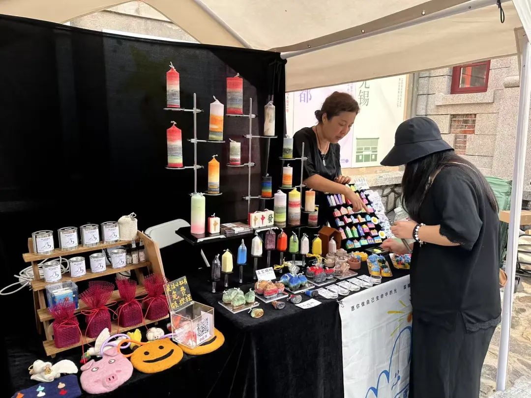 作为“朝阳门之夏”系列活动之一,此次南法艺术市集以“京城81号的历史底蕴”与“法国南部艺术文化”为结合点,创造独特的沉浸式体验场景,形成具有辨识度的品牌化市集。30余家艺术展商带来了融合中法元素的手工艺品、绘画、文创产品等。东城区佩华花艺学校打造的“路易丝的秘密”“海岸”等装置,将法国南部的阳光与闻园81号的回廊巧妙呼应;庭院空间里,闻园记忆展通过大幅布艺照片,生动还原了手稿中记载的南法建筑细节,让游客直面百年前的建筑构想;更有“闻园历史认证官”试卷测试,从建筑本身与百年历史中提炼核心知识点,让大家在互动中深入了解这座老宅的故事。