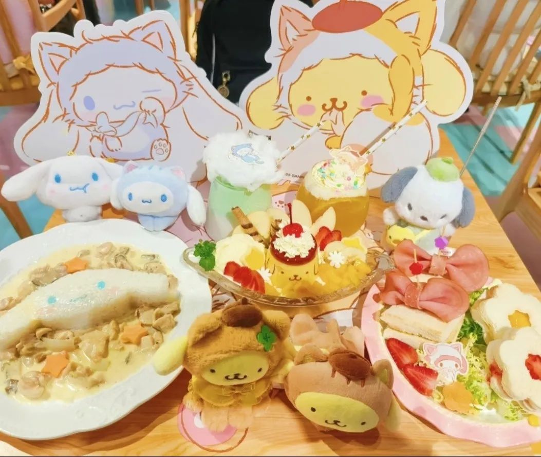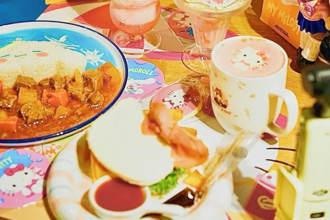 继续向南,就来到了喜悦购物中心,地下二层的Happy Zoo餐厅三丽鸥联名的粉色招牌下,穿洛丽塔裙的店员正给等待的小朋友发“美乐蒂”贴纸。走进餐厅,仿佛掉进了卡通世界:墙壁上是“玉桂狗”的笑脸,座椅摆着“凯蒂猫”的玩偶,连餐具都是各种动画人物的造型。孩子们最期待的主题套餐一上桌,立刻引来一阵欢呼:牛肉咖喱饭做成“玉桂狗”的模样、奶昔里放着“美乐蒂”样子的饼干装饰、酸奶婉里“帕恰狗”正在“游泳”。平时挑食的孩子们来到这里,一个个都变成了“大胃王”,家长们也可以点一杯冰镇水果茶,偶尔和邻座家长聊几句“遛娃经”,享受难得的轻松。