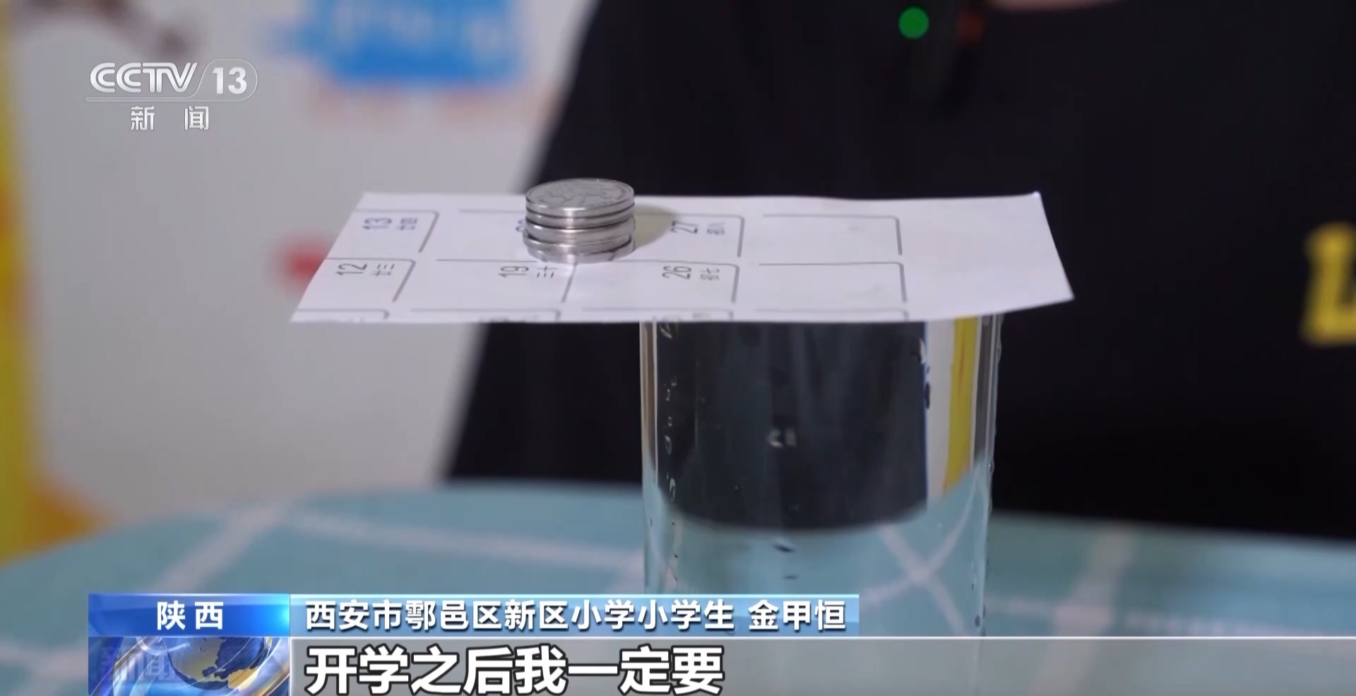 西安市鄠邑区新区小学小学生 金甲恒:硬币跷跷板这个实验太有趣了,它让我知道了很多的知识。我还做过很多实验,比如筷子提米、气球风火轮、自制热气球等,开学之后我一定要跟我的同学分享分享。