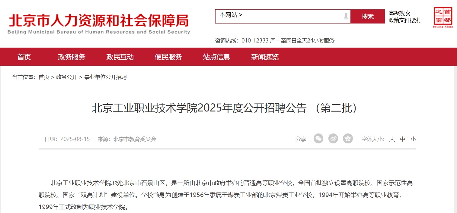 1. 北京工业职业技术学院2025年度公开招聘计划(第二批)