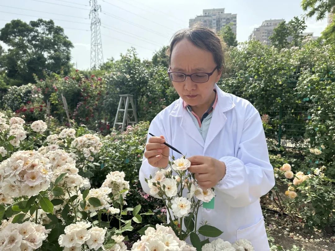 在月季的杂交繁育过程中,人工授粉就是在与时间赛跑。