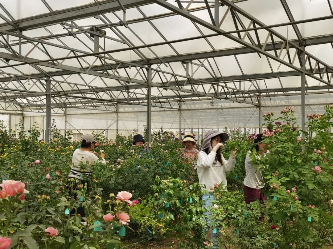 除了研究人员集体上阵,近年来还有一批神秘的“大蜜蜂”5月志愿到这里,为一朵朵月季人工授粉。