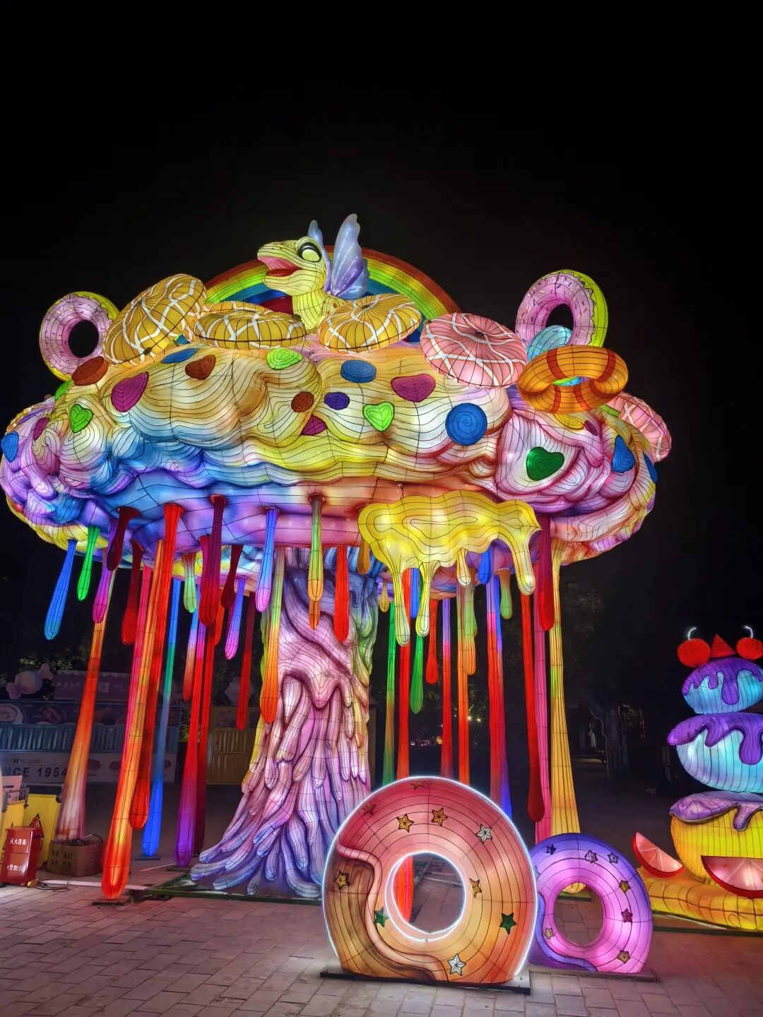 “次元夜游·光影奇旅”打造奇幻世界,七大主题区惊艳铺展:硬核机械撞上萌系治愈,国潮当道点燃全场—— “酷玩启幕” 蒸汽朋克风拉满,“萌物夜行” 萌力爆表,“国潮百戏” 底蕴十足!成了亲子家庭的拍照热门地。