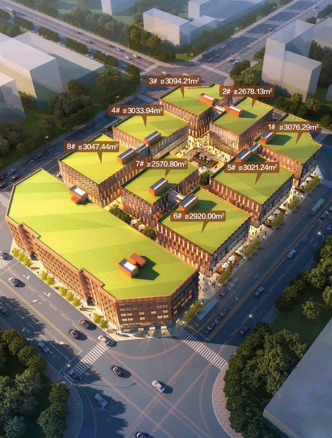 这里共有8栋办公写字楼,单栋建筑面积从1995.13平方米至2445.44平方米不等。还可以根据需求提供高端定制服务,量身打造符合企业需求的独栋办公,定制专属标识。