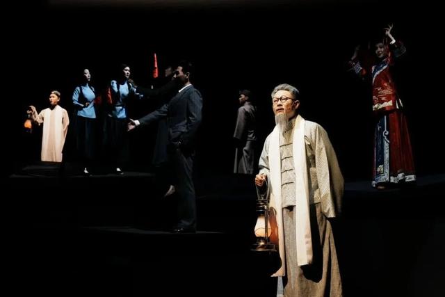 本剧借用戏曲舞台上的假定性,将人物的心灵世界剖白于众。“纸人”元素是曲剧《我这一辈子》中让观众印象深刻的创新。在剧中“我”裱糊的一组“纸人”,以类似古希腊戏剧中“歌队”的形式贯穿全剧。团队巧妙的舞美灯光与服装设计,不仅体现了老北京文化韵味,还生动展现了主人公的人生历程,使角色形象更加饱满。