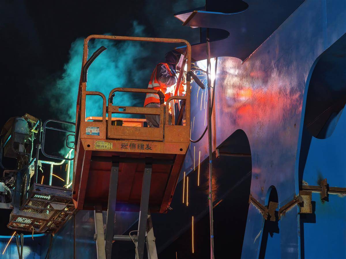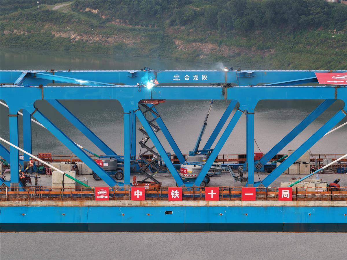 “钢桁梁是组合体系的重要组成部分,精度要求极高。”项目杨连第队总工程师普银波介绍,团队采用三维激光扫描技术,对预埋件进行亚毫米级精度逆向建模,结合BIM技术进行虚拟拼装模拟,提前预测并消除误差,确保了840米钢桁梁的精准安装。