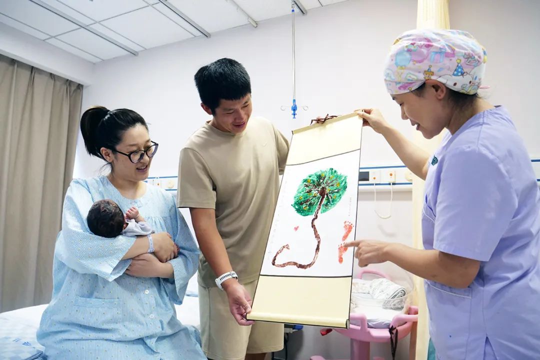 “来,我们一起画一幅拓印画吧!”医生和护士一起拿着提前准备好的绘画工具,邀请我和爱人参与。在她们的指导下,我们完成了一棵“生命之树”,末尾,还印下了宝宝的小脚印。