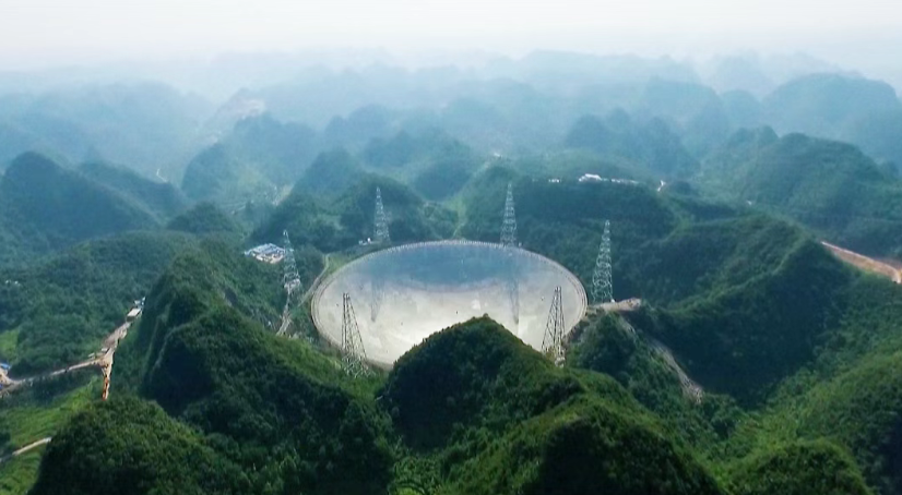 2016年,“中国天眼”落成启用,这是具有我国自主知识产权、世界最大单口径、最灵敏的射电望远镜。