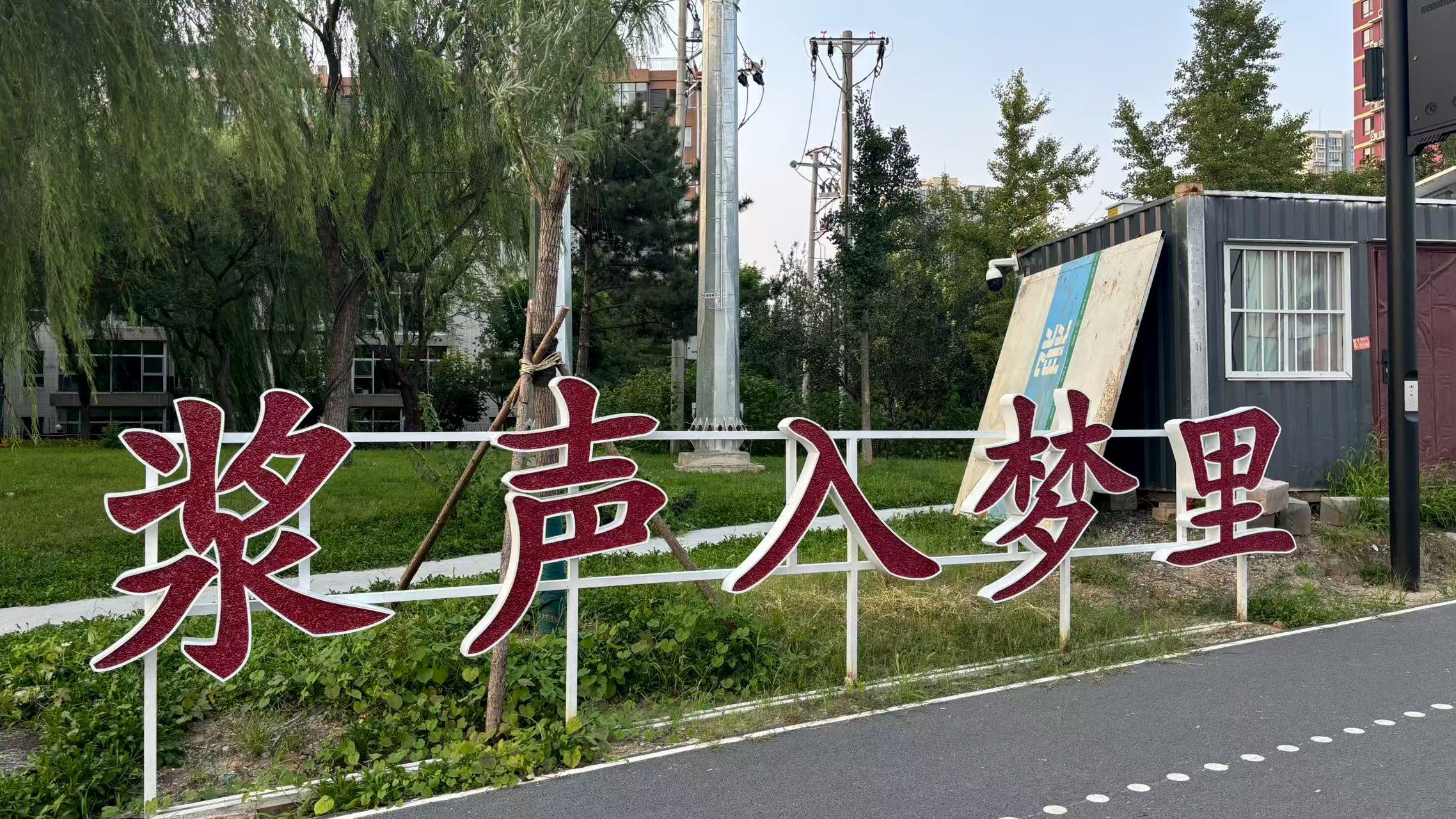 东南方向约3公里外的石榴庄附近,则是今年5月才开放的“凉水河·榴香森林”。其以凉水河为界,分南北两侧。北部片区以“社区花园”为主题,营造成服务社区的绿色健康走廊。甫一踏入公园入口,迎面便是“浆声入梦里”五个红色大字,每个字约一平方米大小。