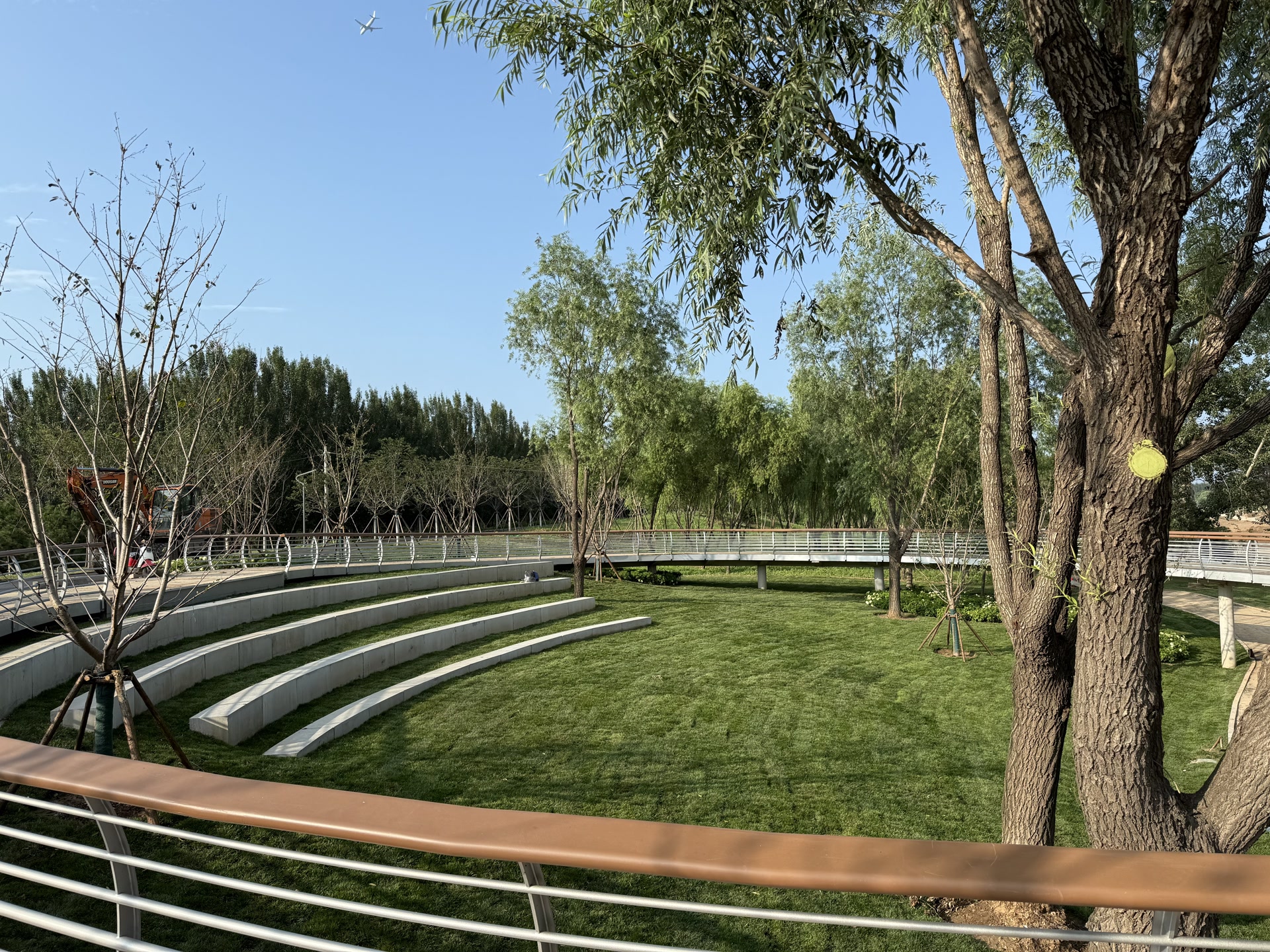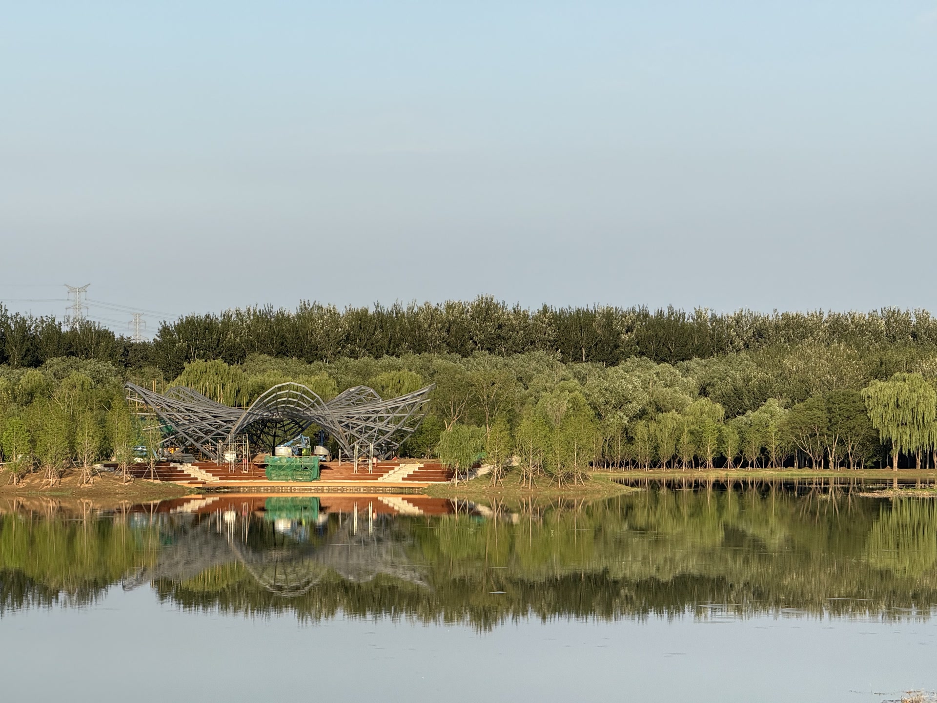 8月19日下午,记者从沙窝村登上坝河口蓄滞洪区一处休闲亲水平台。向水域和对岸遥望,蓄滞洪区整体已初具规模,一座31米高的建筑物蒙着安全网,正加紧施工中。“那是蓄滞洪区新建的水情观测塔。”中国城市规划设计研究院风景分院设计所副所长舒斌龙告诉记者,汛期,水务工作人员可以登高,更好地观测汛情,平时市民游客也可以登高远眺观景。