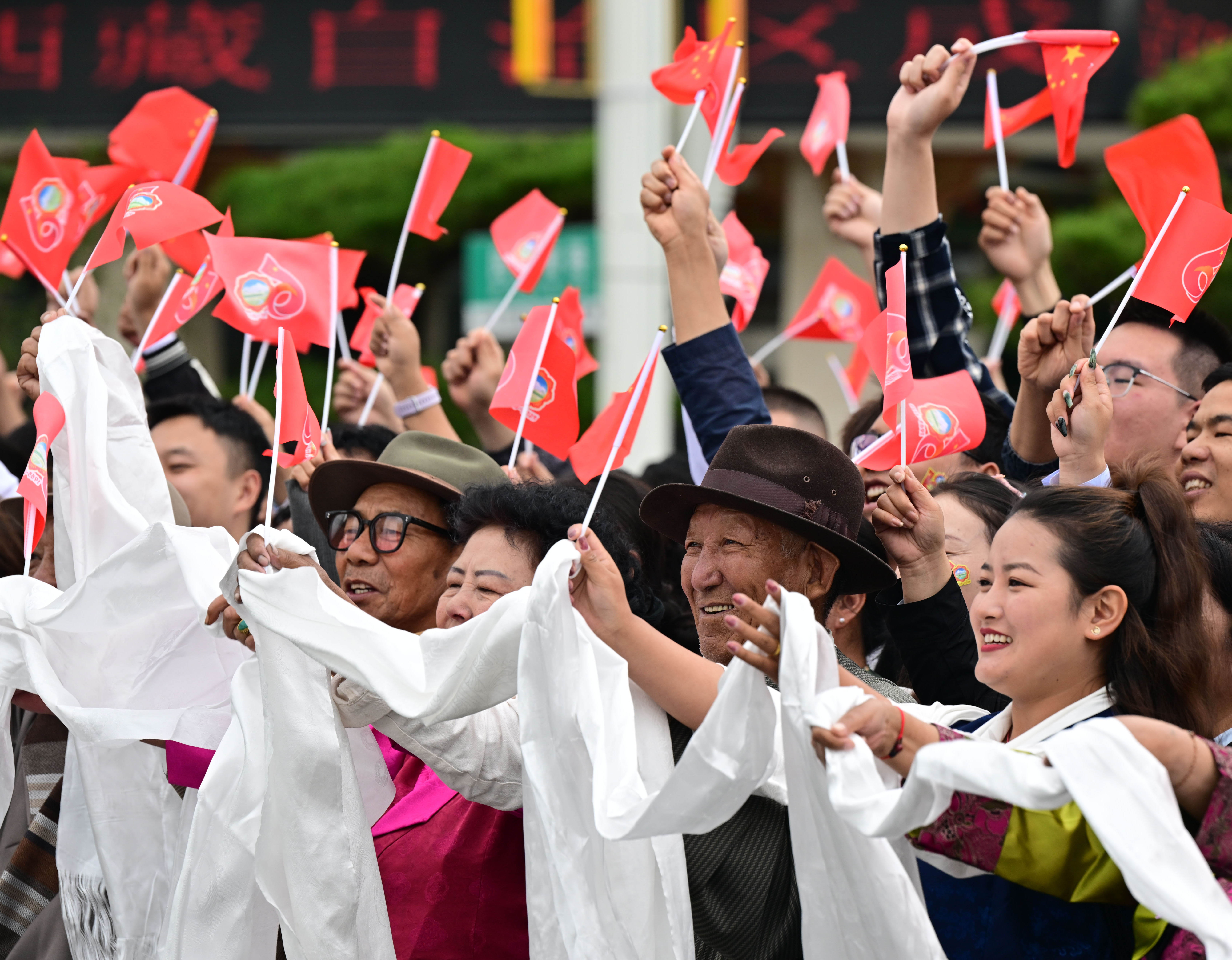 中共中央总书记、国家主席、中央军委主席习近平率中央代表团20日中午乘专机抵达拉萨,出席西藏自治区成立60周年庆祝活动。习近平等在机场和拉萨市区受到西藏各族群众的热烈欢迎。