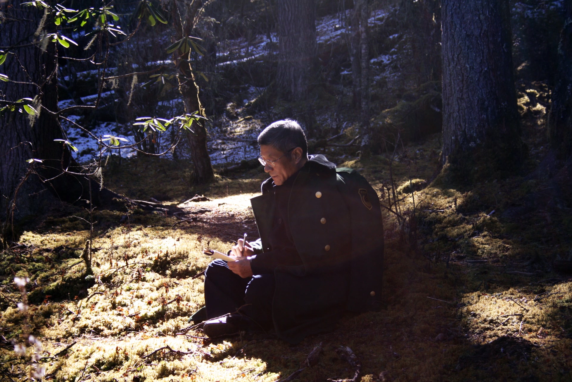 在海南岛霸王岭,梁衡身穿迷彩服,在荆棘丛生的热带雨林里,寻找长臂猿喜欢攀爬和悠荡的那些古树。那里蛇蝎出没,蚂蟥生猛。在赣南大山深处,他钻进古树幽暗的树洞中,不顾潮湿和泥泞,扑通一声就仰躺在里面,亲身体验从树洞里仰望天空到底是一种什么感觉。在黑龙江绥棱林区,他穿着雨靴,哗哗涉水过湿地,到林区最后一片原始林里,寻找当年为抗联英雄挡过子弹的那棵古树。在川北的古驿道,他面对那些古柏,聚神凝思,像是见到阔别多年的老友,眼眶湿润。