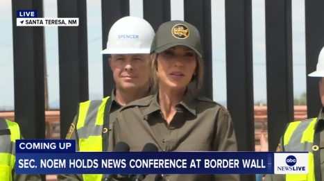 当地时间19日,诺姆在新墨西哥州圣特雷莎举行新闻发布会。图为美媒发布的视频截图