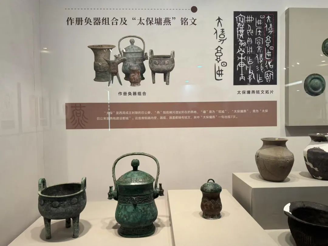 这次展览为何命名为“太保墉燕”?8月15日,记者提前探访首博,在展厅里见到三件作册奂器(作册奂鼎、作册奂卣、作册奂觯)。它们曾入选“2024年度全国十大考古新发现”,即将首次集中展出。