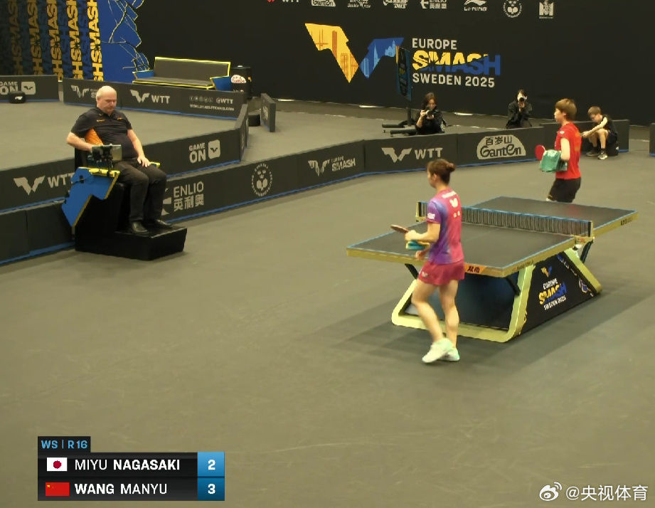 WTT欧洲大满贯瑞典站女单1/8决赛,王曼昱战胜长崎美柚,晋级女单8强。