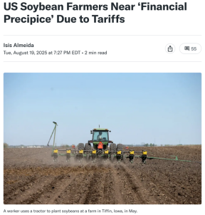 当地时间8月19日,美国大豆协会致信美国总统特朗普,强调农民已因关税负担、销量锐减、成本上升而承受巨大财务压力,呼吁政府调整政策,特别是尽快与中国达成新的贸易协议。这封信既是对政策的呼吁,也折射出美国农业在全球市场格局重塑中的困境。