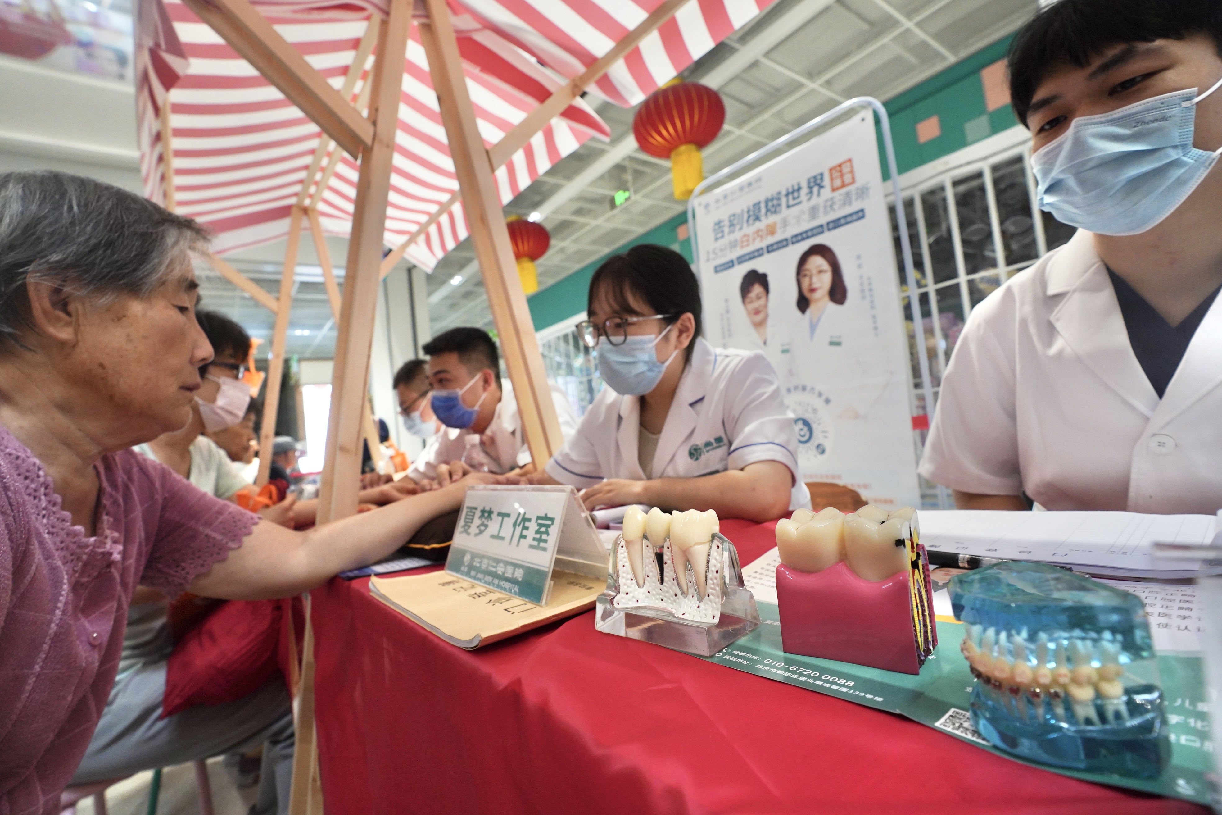 在中医体验区,仁安医院、垡头街道养老服务中心、华德眼科、北京京诺东区口腔等单位借着残疾预防日的契机,将中医公益服务送到基层,将健康关怀“零”距离送到行动不便的残障人士和老年人身边。