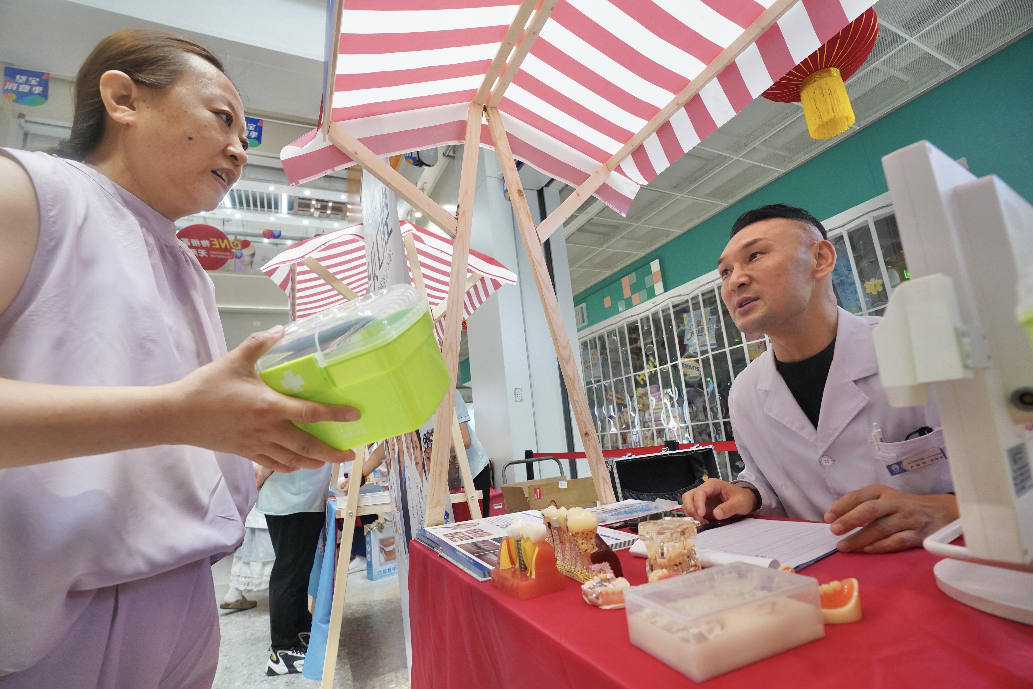 活动现场,中医号脉、手工制作体验、绿植栽培、中医按摩等项目,吸引了残障人士和辖区居民参与。
