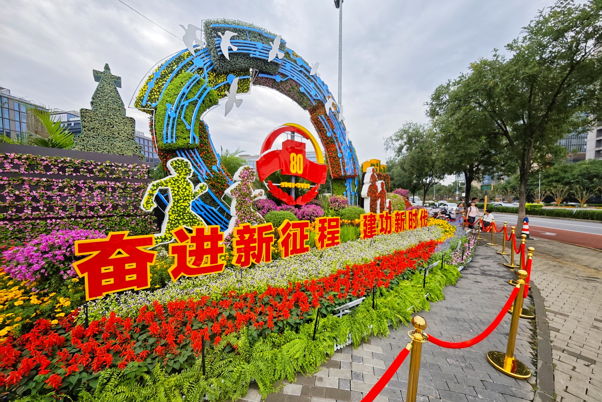 近日,西城区为迎接“纪念中国人民抗日战争暨世界反法西斯战争胜利80周年”景观布置亮相。