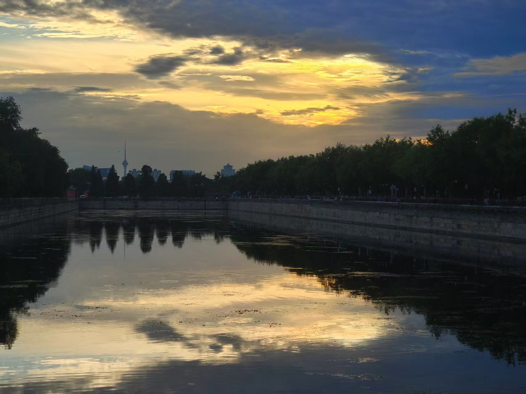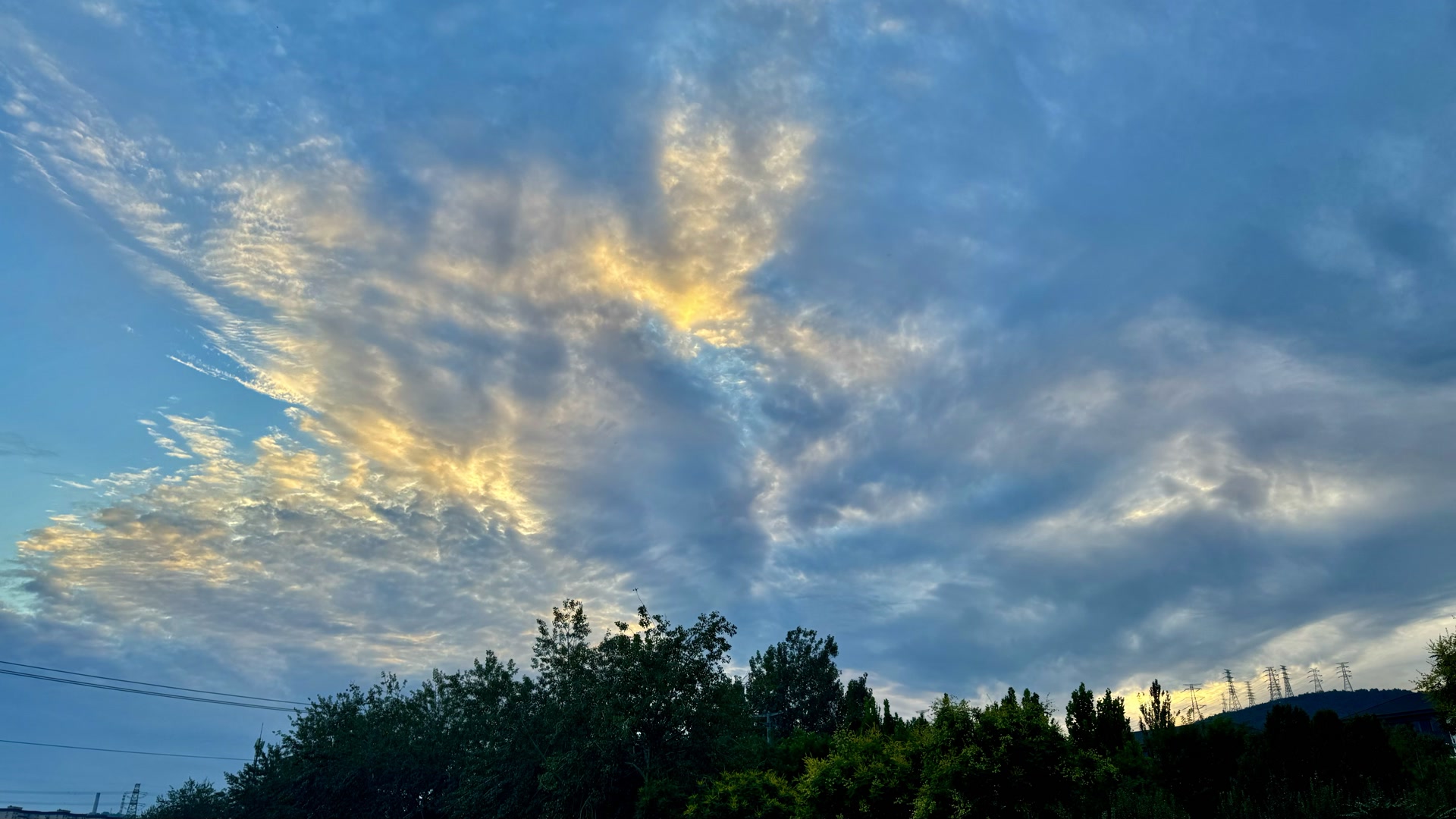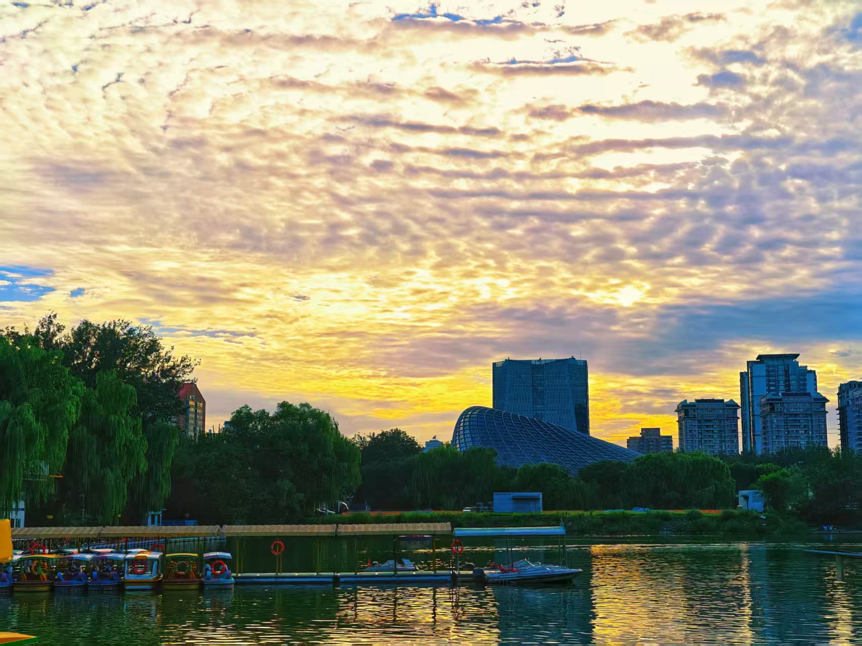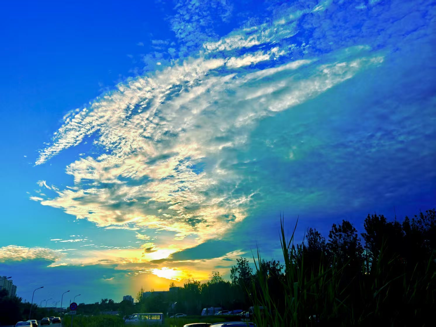 北京傍晚:霞光裁锦缎,云海涌金潮