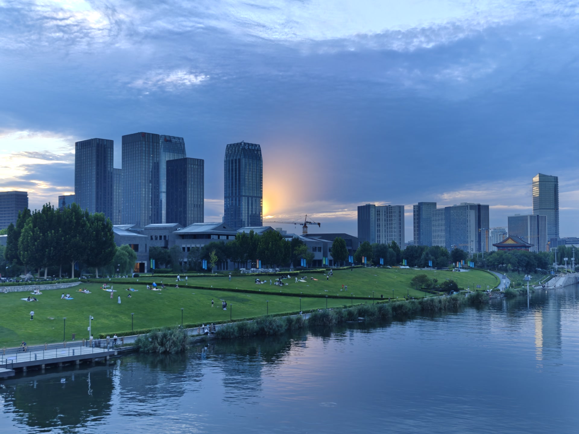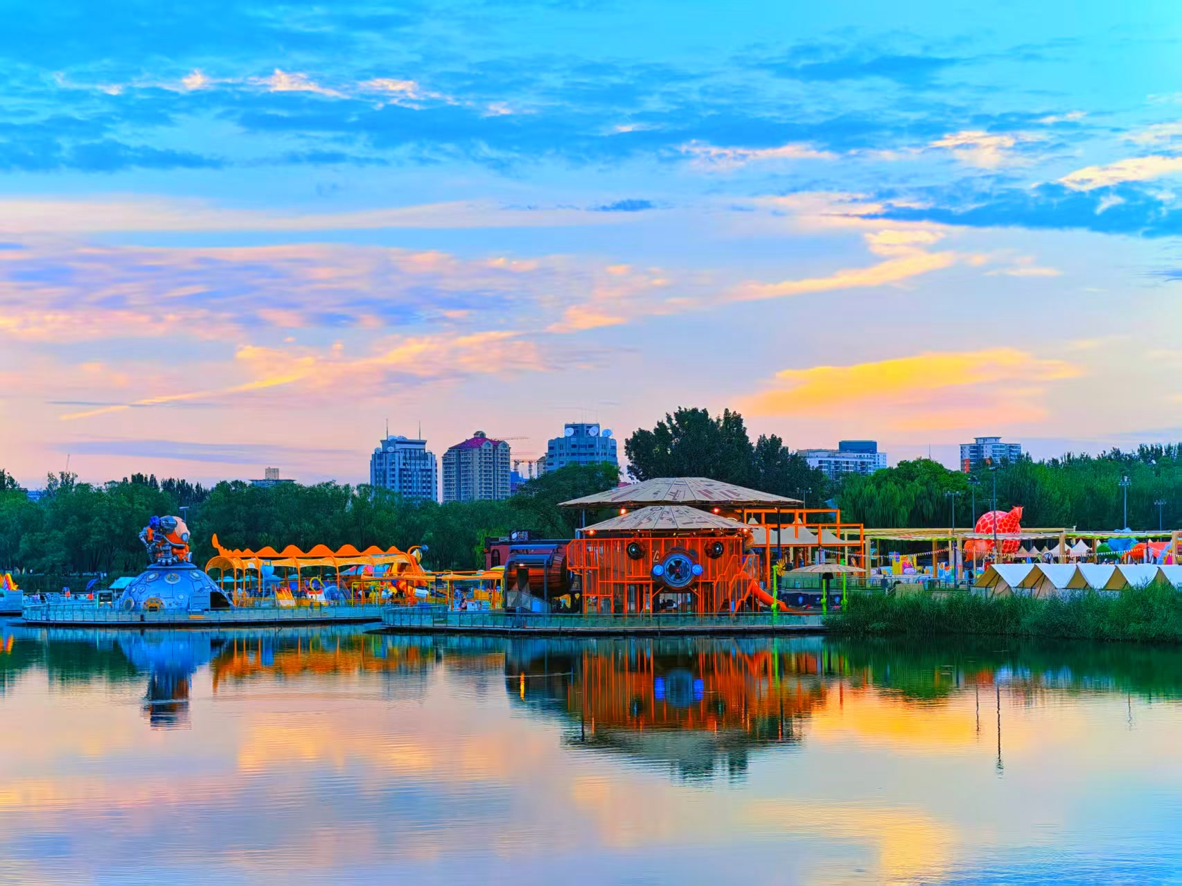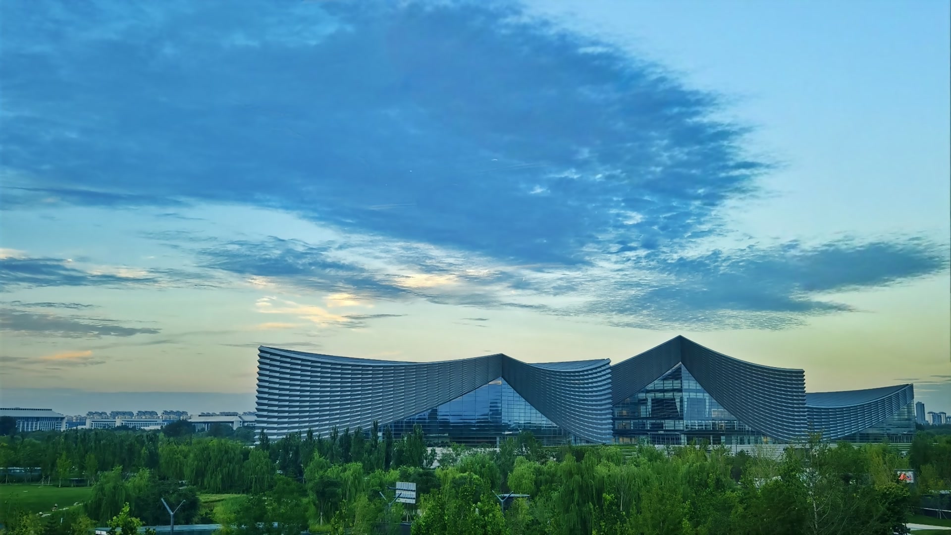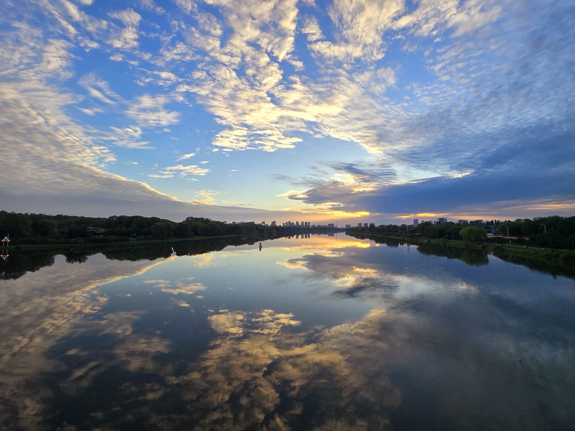 北京傍晚:霞光裁锦缎,云海涌金潮