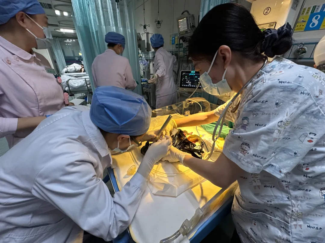 救护车抵达医院。当医护人员从保温毛巾中抱起这个小生命时,所有人都屏住了呼吸:婴儿皮肤呈半透明状,四肢细如成人手指,呼吸微弱得几乎看不见胸廓起伏。北京儿童医院靳绯主任亲临现场指导、迅速评估:“心率80次/分,呼吸浅表,皮肤发绀,必须立即插管实行早产儿复苏术!”