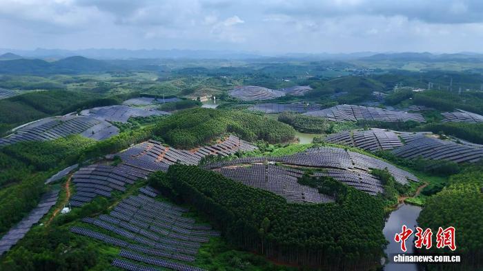 初秋清晨,阳光穿过层叠的光伏板,将广西崇左市江州镇板崇村后山的坡地“镀上”金色,光伏板下却是一片盎然生机:五指毛桃舒展着“五爪”叶片,空气中浮动着椰香,天冬、百步从行间探头,为3722亩的“光伏海洋”绣上绿边。