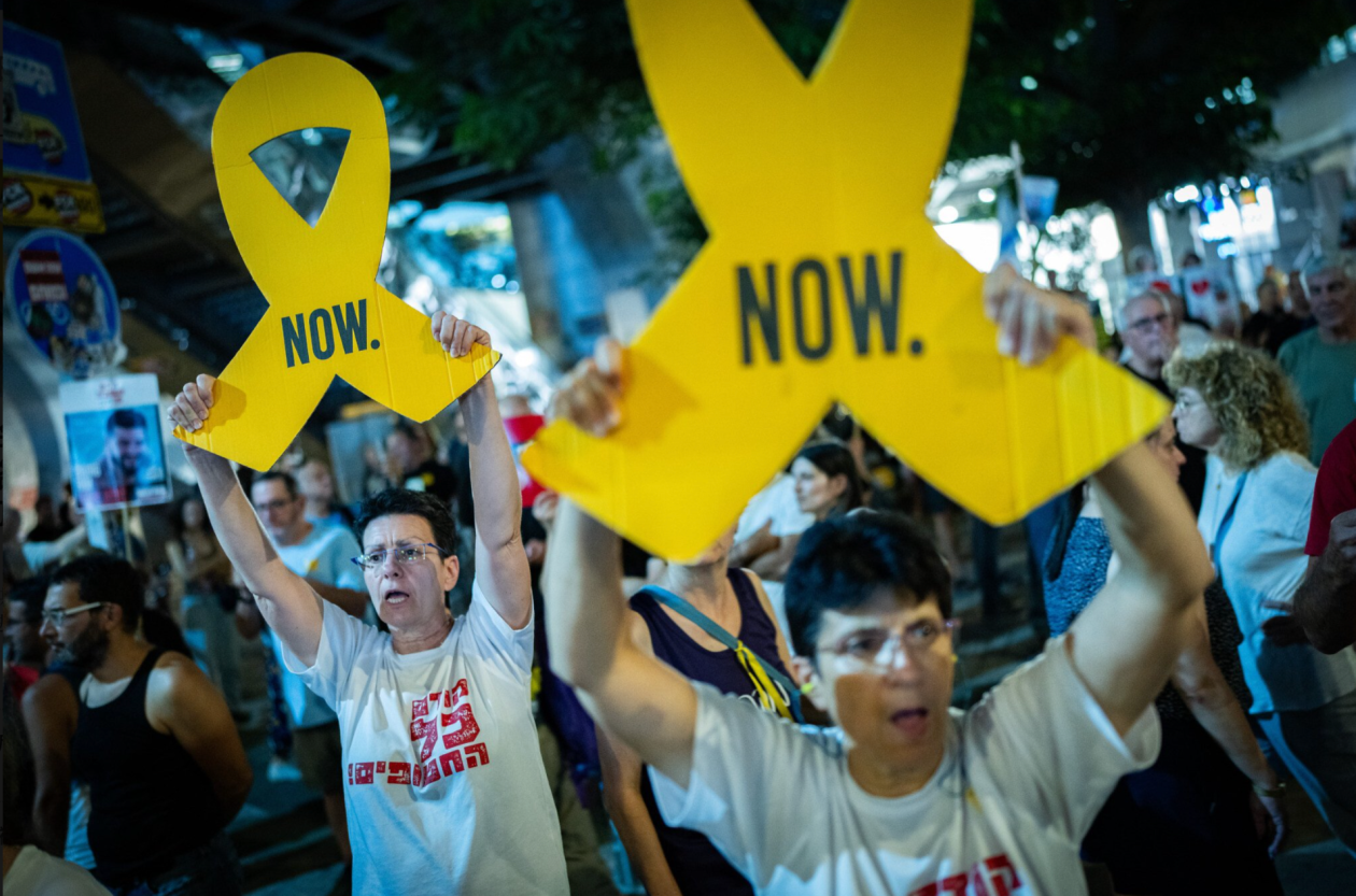 当地时间23日,示威者在特拉维夫呼吁加沙停火并释放被扣押人员。图源:以媒