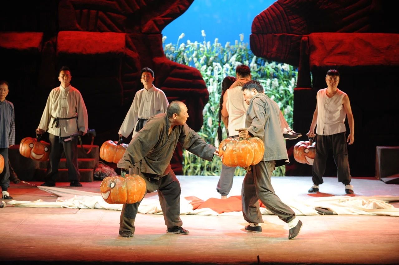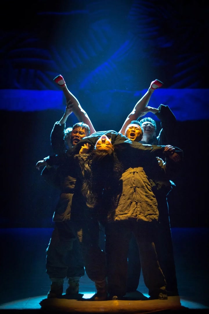 原著小说中,作家萧红以散文化的笔触描绘了东北农民在封建压迫与日军侵略下的生死挣扎,而话剧的舞台改编则大胆突破文学叙事的束缚,采用多时空交织、蒙太奇式调度的非线性叙事手法,使舞台呈现如电影般流动的史诗感。农民的苦难、日军的暴行、民族的觉醒与抗争,不是按时间顺序展开,而是在生死轮回的意象中不断闪回、对比,形成更强烈的历史纵深感。