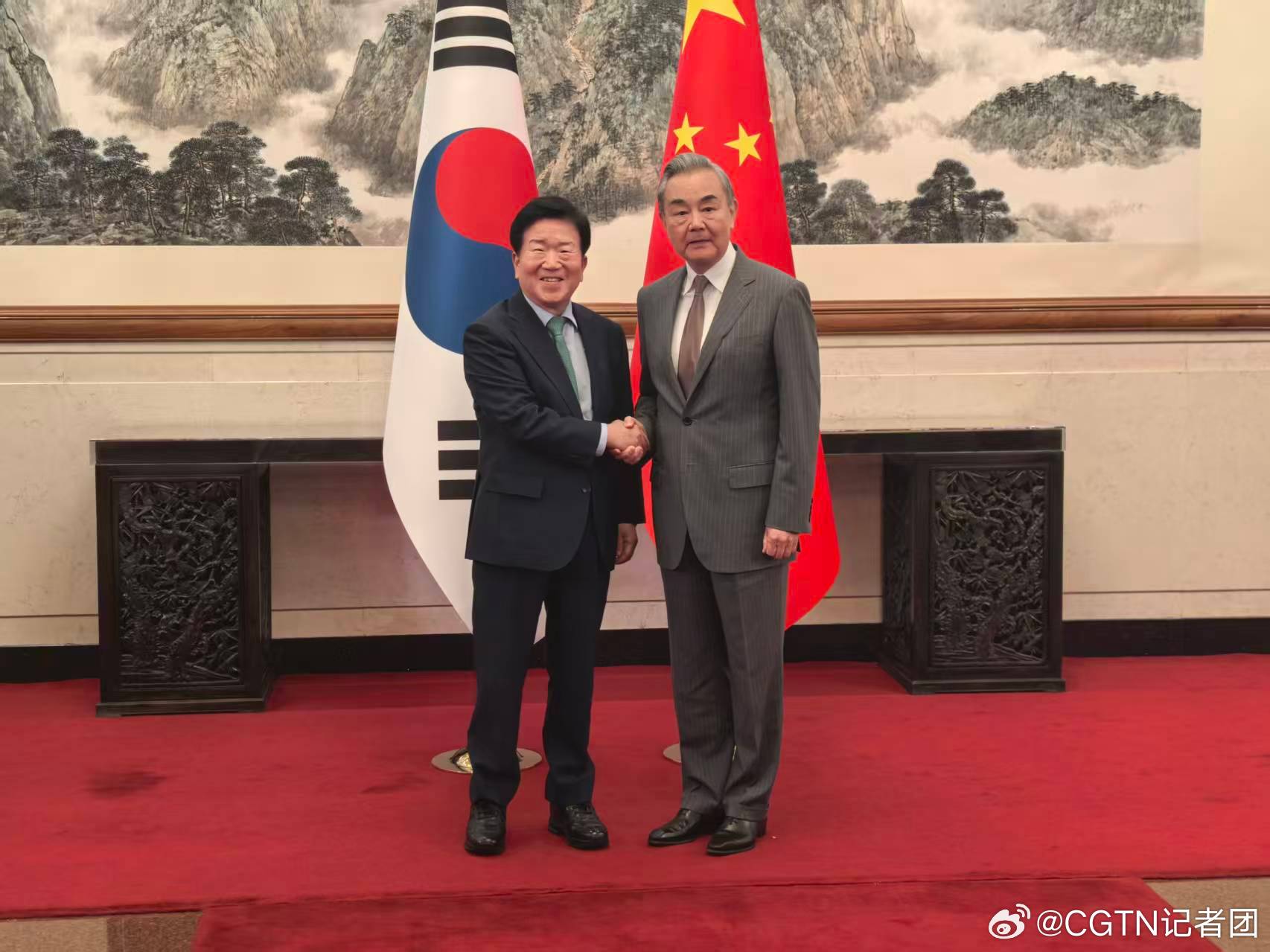 中共中央政治局委员、外交部长王毅8月24日在北京会见韩国总统特使、韩国前国会议长朴炳锡。以朴炳锡为团长的韩国特使团于24日至27日对中国进行访问。8月24日也是中韩建交33周年纪念日。