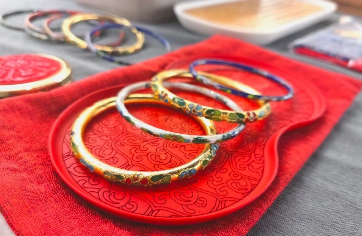 除了逛主题展览一饱眼福,市民也可以在此平价“淘”老货。其中,三层非遗馆主要以雕漆特色饰品、摆件为主,尤其是雕漆手镯很受欢迎;四层“予寻京喜”店内的老货市集里,主要是精工木雕、文房雅玩等特色工艺品,景泰蓝手镯、鸭蛋画、茶具、手串等“老货”充满生活气息与时代印记,物有所值。