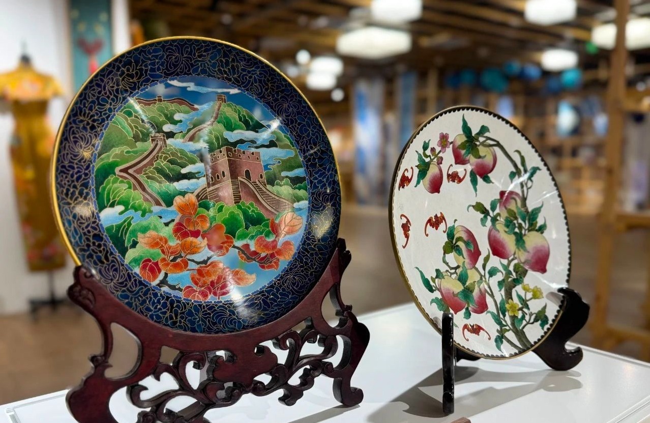 牙雕套球、景泰蓝赏盘、翡翠台屏……在“予寻京喜”艺术非遗旗舰店内,一场主题展览正在举办,一件件技艺精湛的工艺美术精品陈列于展柜之中。“连价签都是九十年代的,原封不动。”大厦工作人员轻轻拂去一个锦盒上的薄尘,露出泛黄的价签——1999年的墨迹依然清晰。