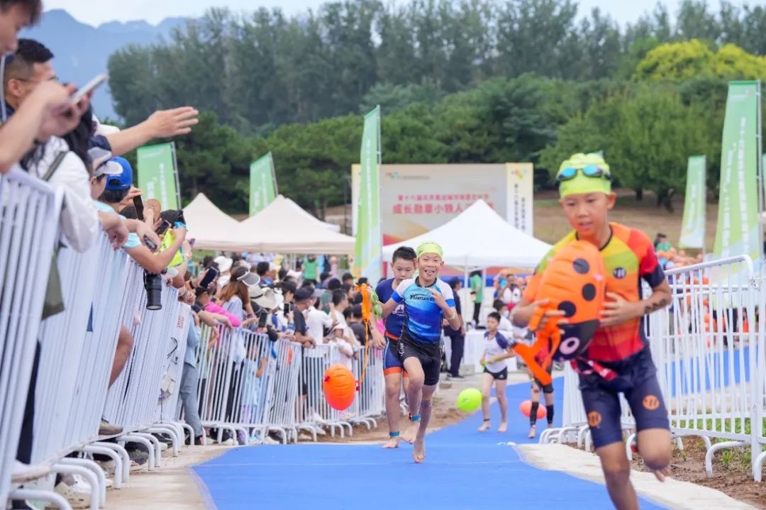 “加油!摆臂!冲刺!”,8月24日,北京市永乐青年体育大本营内热闹非凡,第十六届北京奥运城市体育文化节成长勋章小铁人三项赛在此鸣枪开赛,500名青少年齐聚昌平,在游泳、自行车、跑步的赛程中挑战自我,更在“双奥”主题氛围里感受体育魅力。
