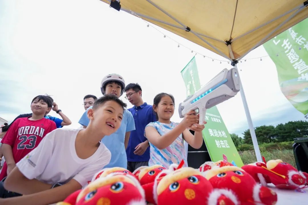 为了让“小铁人”们在紧张的赛事中也能享受轻松氛围,8月23日至24日,赛事同期举办了“双奥”主题营地活动。现场展示了奥运火炬、颁奖台等珍贵的奥运实物,吸引小选手们纷纷拍照打卡。