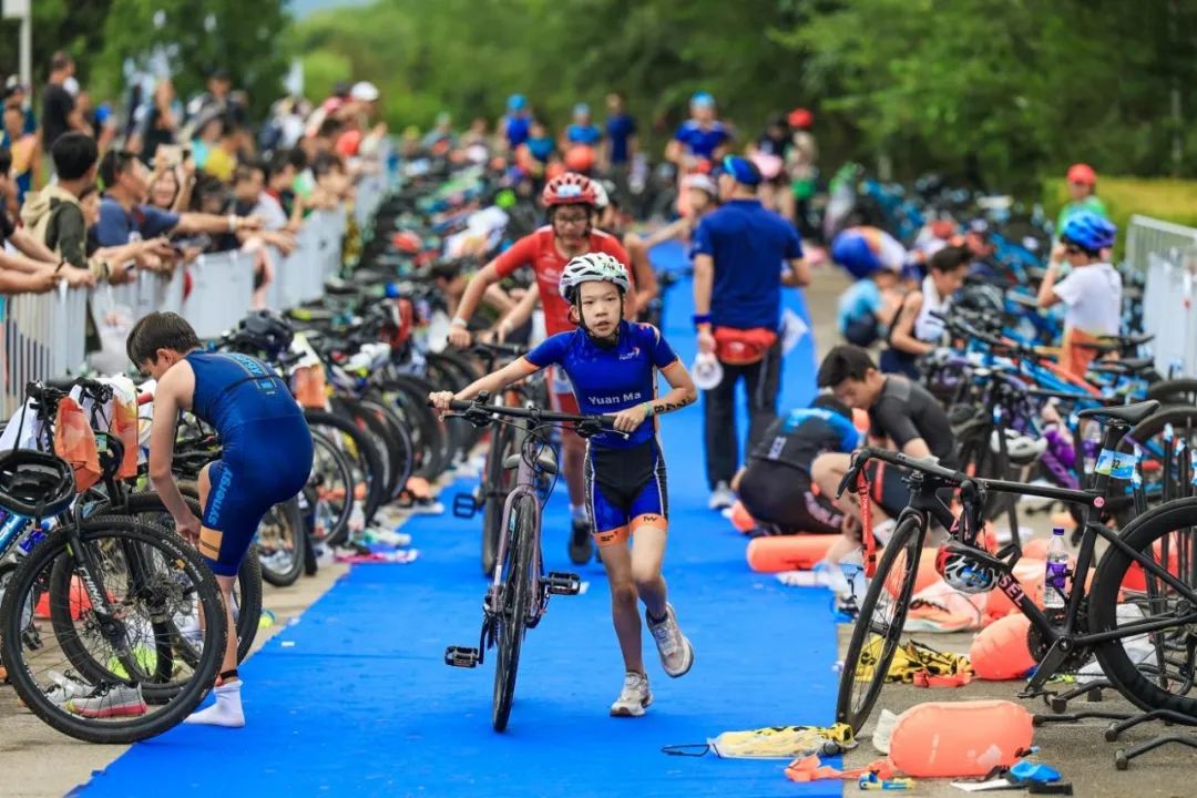 随着发令枪响,比赛开始。小选手们如离弦之箭般冲入赛场。在永乐青年体育大本营的湖中,他们劈波斩浪,溅起层层水花;在原2008年北京奥运会铁人三项赛的骑行赛道上,小选手们骑着自行车,风驰电掣,尽享速度与激情;在绿树成荫的跑步赛道上,他们全力冲刺,朝着终点奋勇向前。