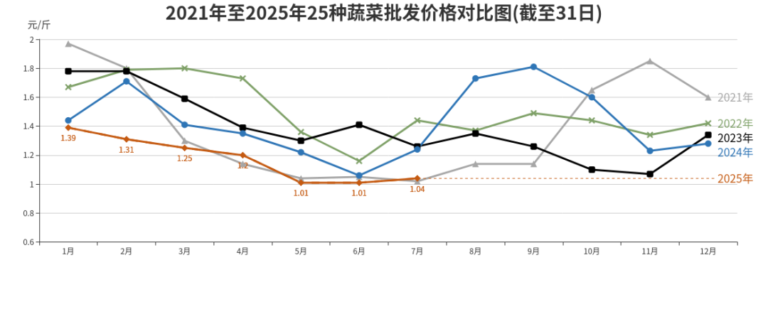 蔬菜批发、社区菜店、连锁超市价格分别为每斤1.04元、2.87元、3.46元,环比分别上涨2.97%、1.77%、4.22%,同比分别下降16.13%、2.71%、2.26%。