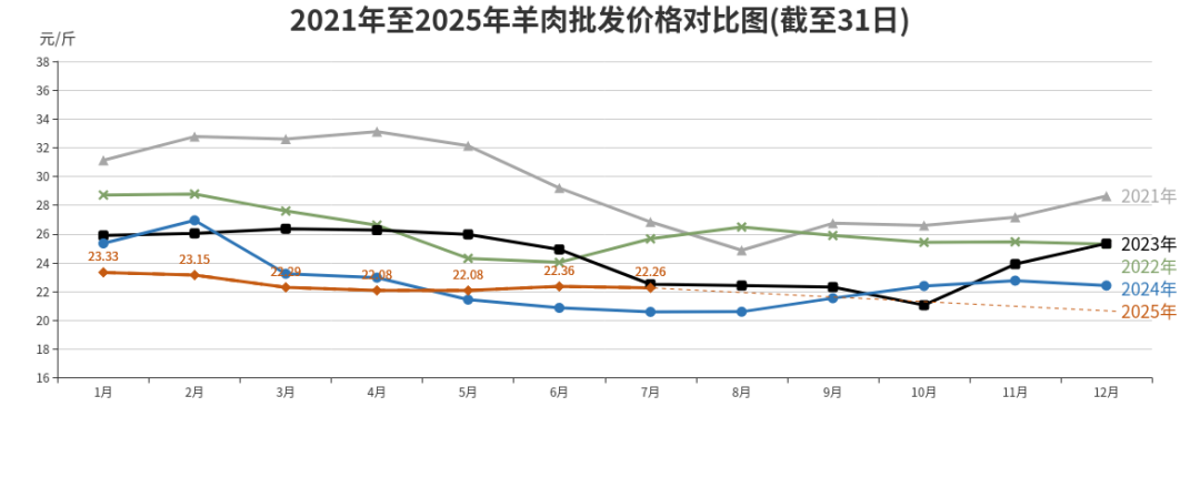 羊肉批发、农贸、超市价格分别为每斤22.26元、35.64元、43.31元,环比分别下降0.45%、下降0.42%、上涨0.07%,同比分别上涨8.11%、下降1.16%、下降1.43%。
