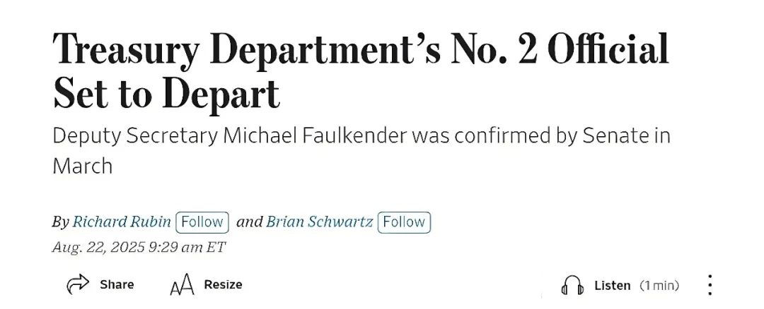 8月21日,福尔肯德提交辞呈,财政部发的声明里只字不提离职原因,只干巴巴地说“感谢其服务”——这种“此地无银三百两”的操作,在美国政坛早就成了“被迫离职”的标配。