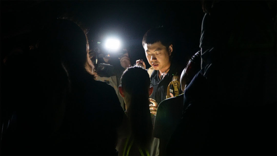 晚上6点半,参与活动的家庭在香山公园集合。孩子们人手一支强光手电,在博物导师的带领下先进入“预热课堂”。“蟾蜍的毒腺集中在耳后,观察时不要触摸,蝉的若虫要在地下生活3-7年才能破土羽化”“如果今天比较幸运的话我们还可以看到萤火虫”……导师刘昊林用互动问答引出夜探注意事项,屏幕上展示着香山特有的20余种夜行生物图谱。