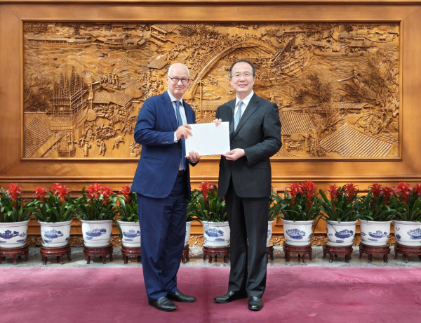 2025年8月25日,外交部部长助理兼礼宾司司长洪磊接受英国新任驻华大使魏磊递交国书副本。魏磊大使于8月22日抵华。