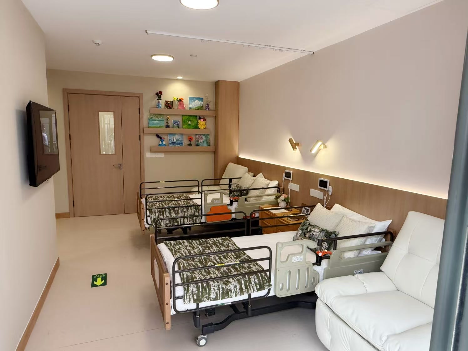 “为了开设病房,我们对养老机构的原有功能区进行了标准化、适老化改造,并按相关要求分开设置患者通道和医护通道。”北京友谊诚心社区负责人介绍,病房区域约85平方米,其中设有两张医疗床位,还有护士站和治疗室等专业设施。