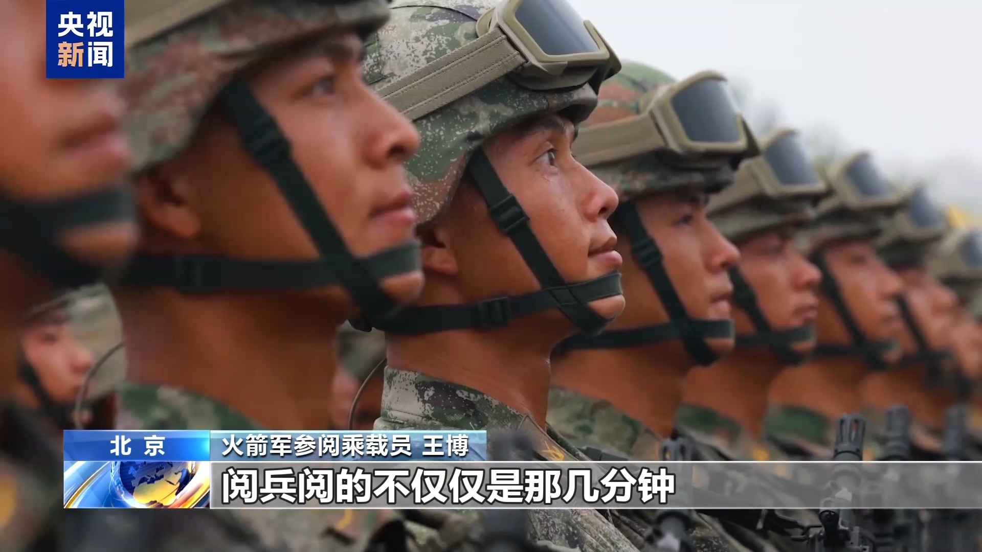 火箭军参阅乘载员 王博:能够站在长安街,能够登上我们威武的导弹发射车,驶过天安门,接受党和人民的检阅,是我作为一名火箭兵的无上荣光。现在,我越来越深刻地体会到,阅兵阅的不仅仅是那几分钟,阅的是我们练兵的过程。