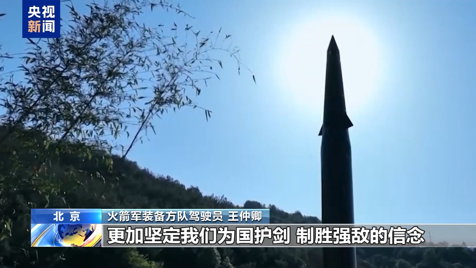 火箭军装备方队驾驶员 王仲卿:点火命令下达后,看到导弹划破苍穹,当时我热泪盈眶,我感觉这发导弹打出了我们的国威军威,更加坚定我们为国护剑、制胜强敌的信念。