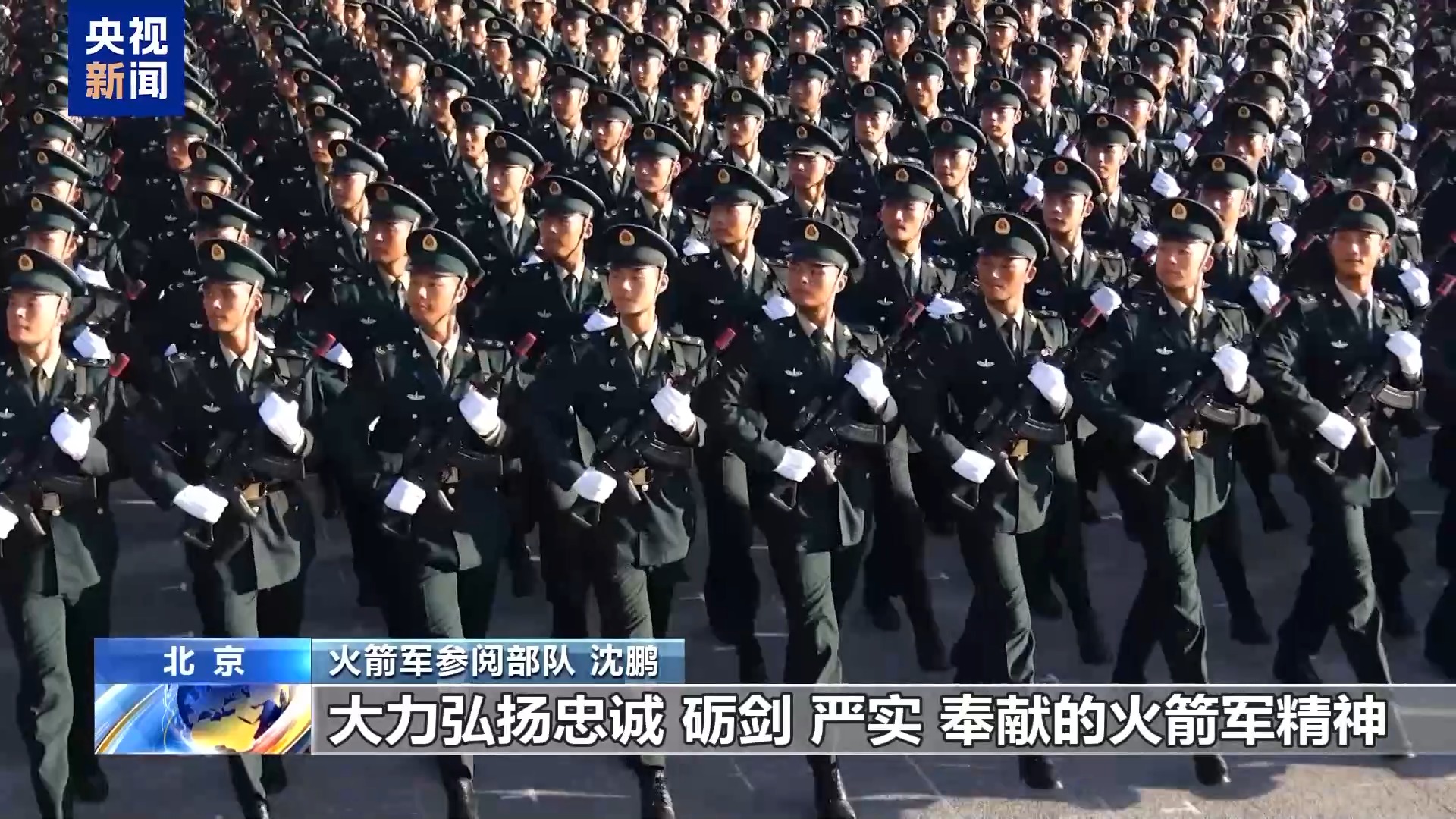 火箭军参阅部队 沈鹏:纪念抗战伟大胜利、弘扬抗战伟大精神。我们火箭军参阅部队就是要把这种精神品质融入官兵骨子里,大力弘扬“忠诚、砺剑、严实、奉献”的火箭军精神,让忠诚的基因融入血脉,让全体参阅官兵在阅兵场上走出大国气势,走出王牌担当。