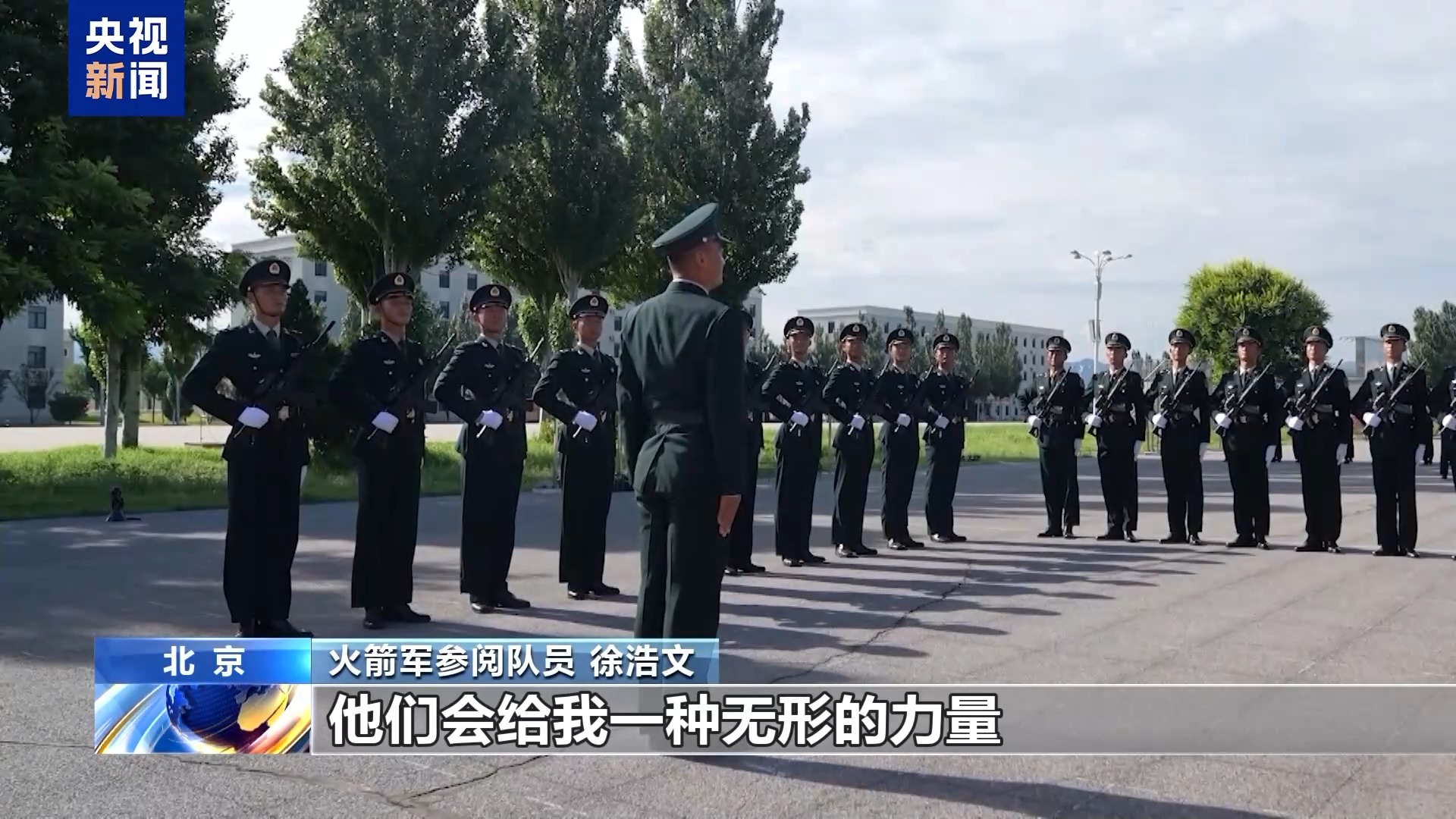 火箭军参阅部队 徐浩文:当收到了阅兵的通知之后,我第一时间想到了我的大爷爷和二爷爷,因为他们在抗日战争中和解放战争中牺牲了,所以我怀着一颗无比激动和敬畏的心,参加报名,专门在网上将他们的烈士证书打印了一份,时刻揣在自己的身上。大爷爷和二爷爷为了新中国的成立而牺牲了自己的生命,在训练当中,我总能感受到他们会给我一种无形的力量,在不断激励着我,让我以更加昂扬的姿态去完成这次任务。